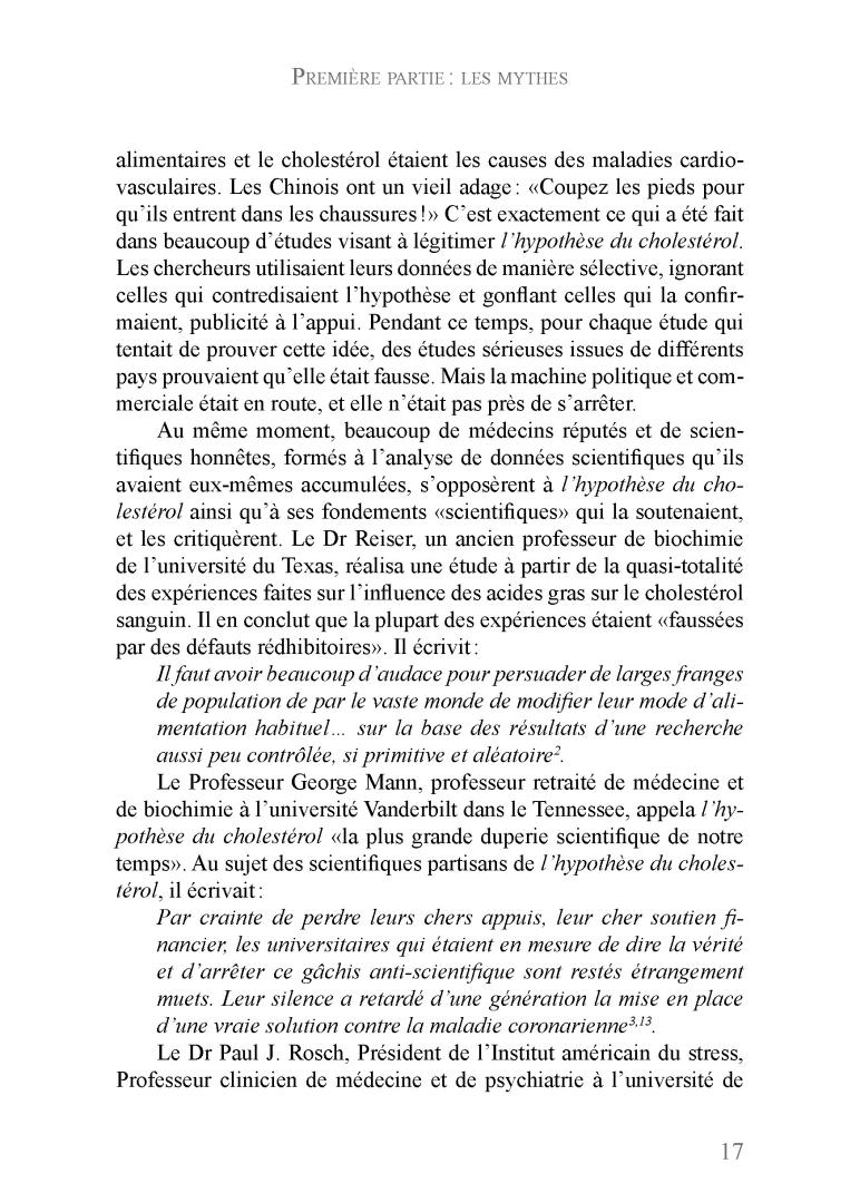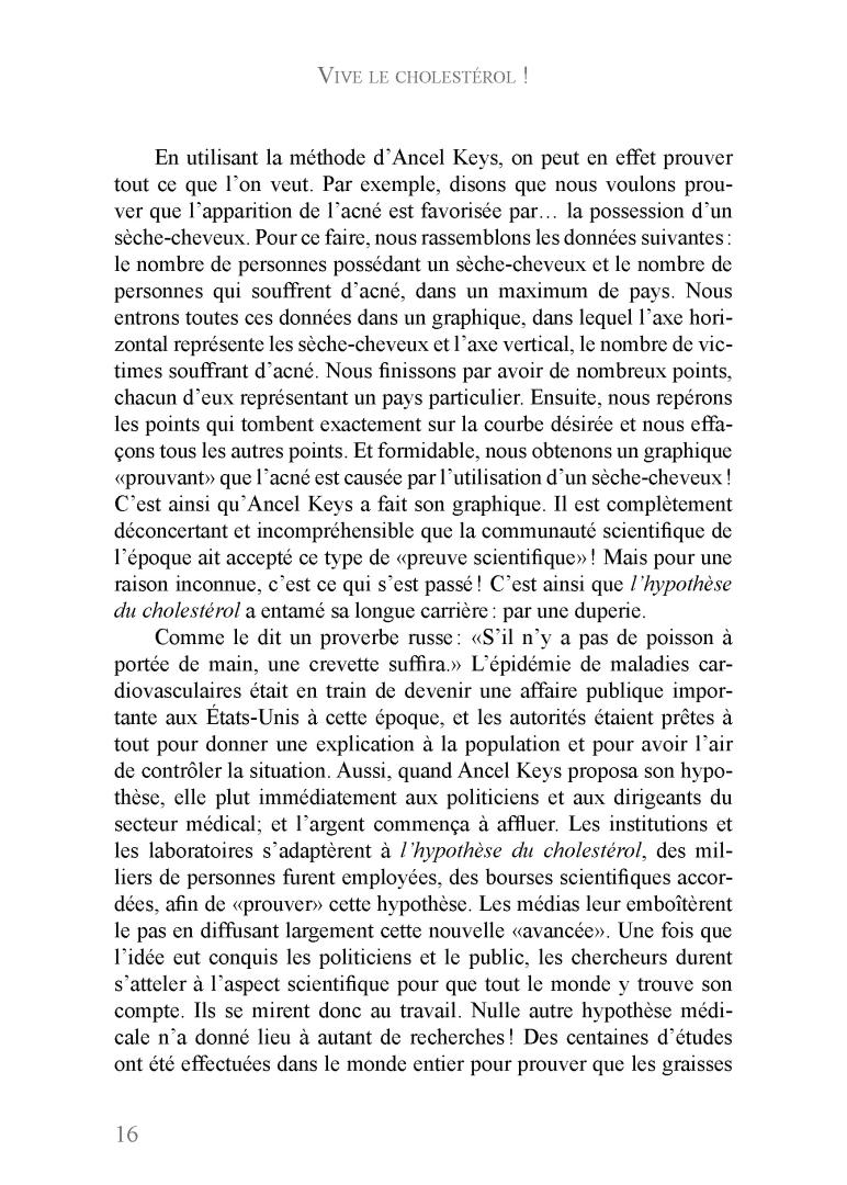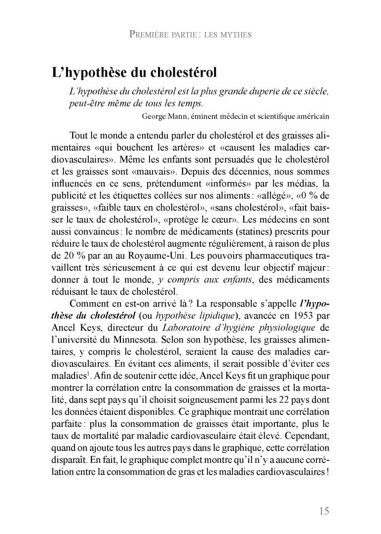 L’hypothèse du cholestérol jouit d’une longévité et d’une respectabilité imméritée. Le lecteur devrait être conscient de la nature non scientifique des affirmations qui ont permis de soutenir cette hypothèse, et n’y voir rien d’autre qu’une “intox” nuisible…